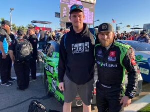 Cory Conway poses with one of his favorite drivers, Jeffrey Earnhardt.