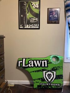 I own the left rear quarter panel from Jeffrey Earnhardt’s 2022 Daytona car. This was my first time at Daytona, and I had my picture taken with him next to the car where the quarter panel was visible in the photo.