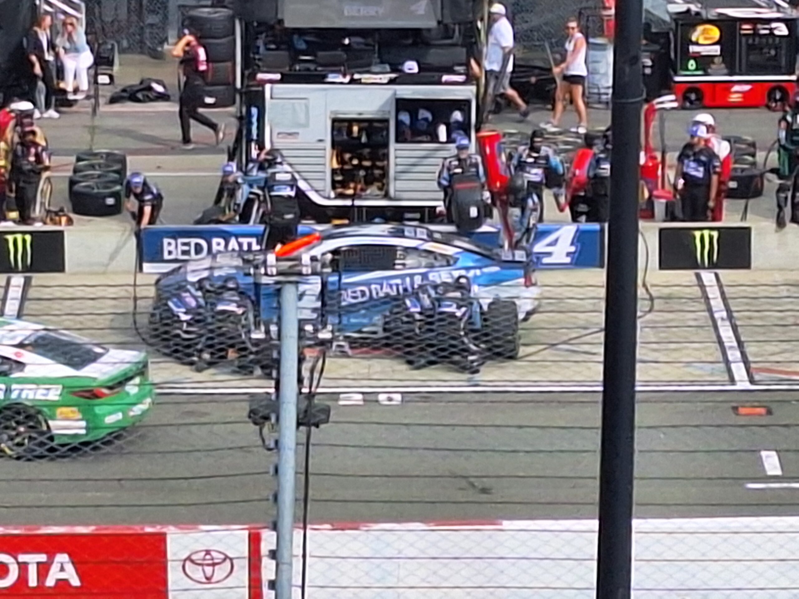 Seeing the backside of race morning was a different experience for sure. While I was able to get to the merch trailer I wanted to, seeing the surrounding activity was somewhat unexpected. While the crowd has mostly made their way to the stands by our arrival, the quick walk to the Trackhouse / Chevrolet trailer was interesting.