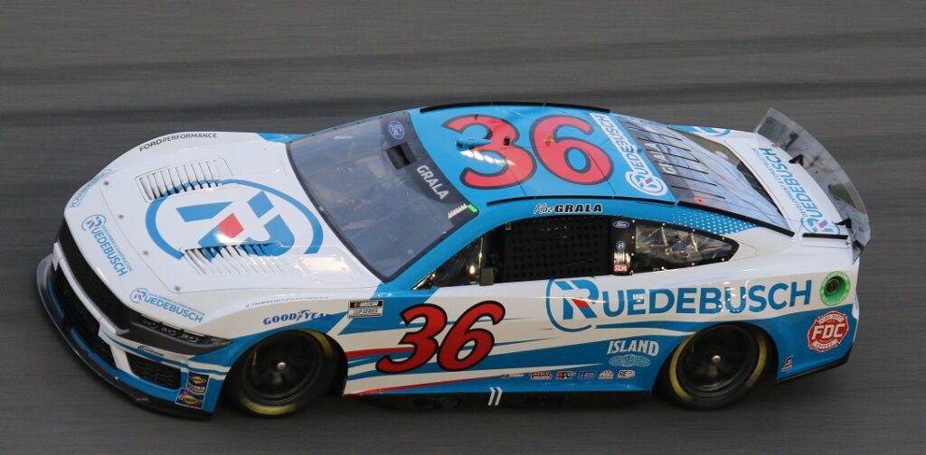 Rick Ware Racing driver Kaz Grala jumped into FRM’s part-time #36 Ford for the Daytona 500 for a one-off start. Bringing sponsor Ruedebusch on board for the race, Grala would ultimately start 26th and finish 38th due to a lap five accident. This was the #36 entry’s only appearance in 2024, despite the team running more race in previous seasons.