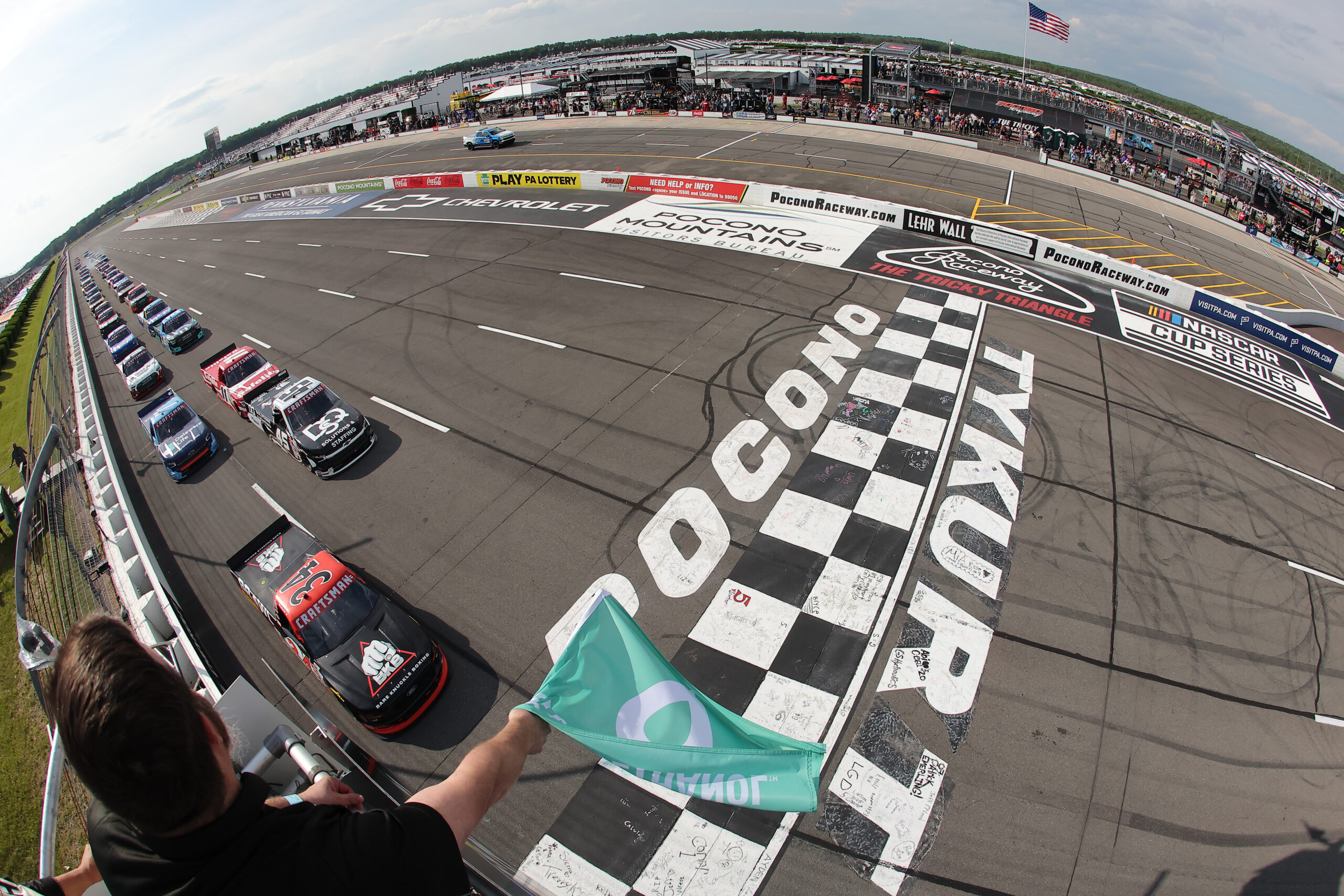 Pocono Raceway played host for the MillerTech Battery 200 in the NASCAR Craftsman Truck Series. Layne Riggs was fastest in qualifying, earning him his first pole of the year. Another youngster joined him on the front row, Kaden Honeycutt. Corey Heim and Carson Hocevar started in the second row. The stage lengths were 20 laps for the first and second stages, with the final stage being 40 laps.